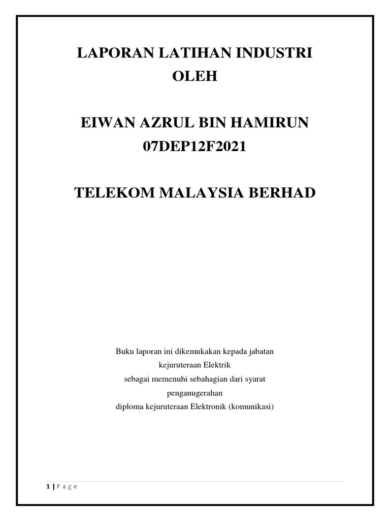 Latihan industri bagi pelajar universiti sememangnya tidak asing lagi. Diantara objektif latihan industri adalah seperti berikut. Di syarikat ini saya telah diletakkan di Bahagian Teknologi Maklumat Komunikasi.